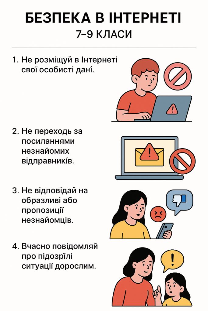 Безпека дітей у інтернеті завжди знаходиться під загрозою, адже мережа, окрім корисної інформації та спілкування, приховує і чимало небезпек. Щодня учні стикаються з ризиком кібербулінгу, шахрайства, поширення особистих даних чи навіть спроб вербування у протиправні дії.